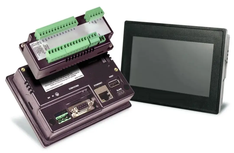 <li class="whitespace-normal break-words pl-2">Compact 4.3" all-in-one HMI + PLC unit combining touchscreen visualization and programmable logic control in a single device — eliminating the need for separate hardware</li>